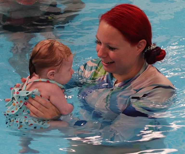 April Mate’s journey into solo swim instruction & working for herself began in 2000 when she started teaching private traveling lessons, bringing her passion and expertise directly to families in their own backyards. In 2001, she further refined her skills by working with renowned swim instructor Ginny Flahive, learning the foundations of professional swim instruction.